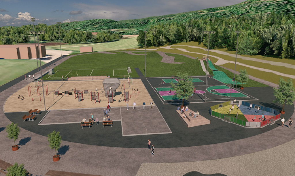 Bildet er kun en arbeidsskisse av hvordan deler av aktivitetsparken kan komme til å se ut.